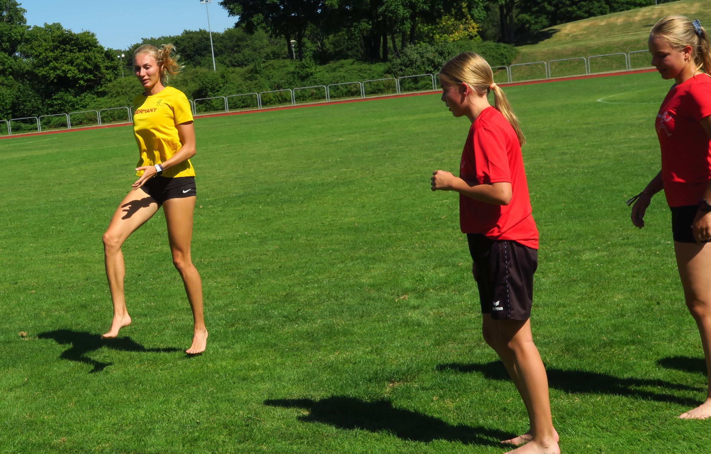 Nach der Begrüßung durch die Camp-Leiter Volker Zahn bzw. Christian Hummel konnte es im Stationenbetrieb losgehen, der in fünf Leichtathletik-Einheiten fast den ganzen Disziplin-Kanon abdeckte. Kennenlernspiele sorgten dafür, dass die Gruppen mehr Wissen über ihre Mitglieder anhäuften. Eine besondere Überraschung gab es für die Albstädter Gruppe: WM-Teilnehmerin Elisa Lechleitner – im Vorjahr noch als Betreuerin dabei – stattete dem Camp einen Besuch ab, gab Einblicke ins WM-Unternehmen und im Stadion dann auch massig Autogramme.