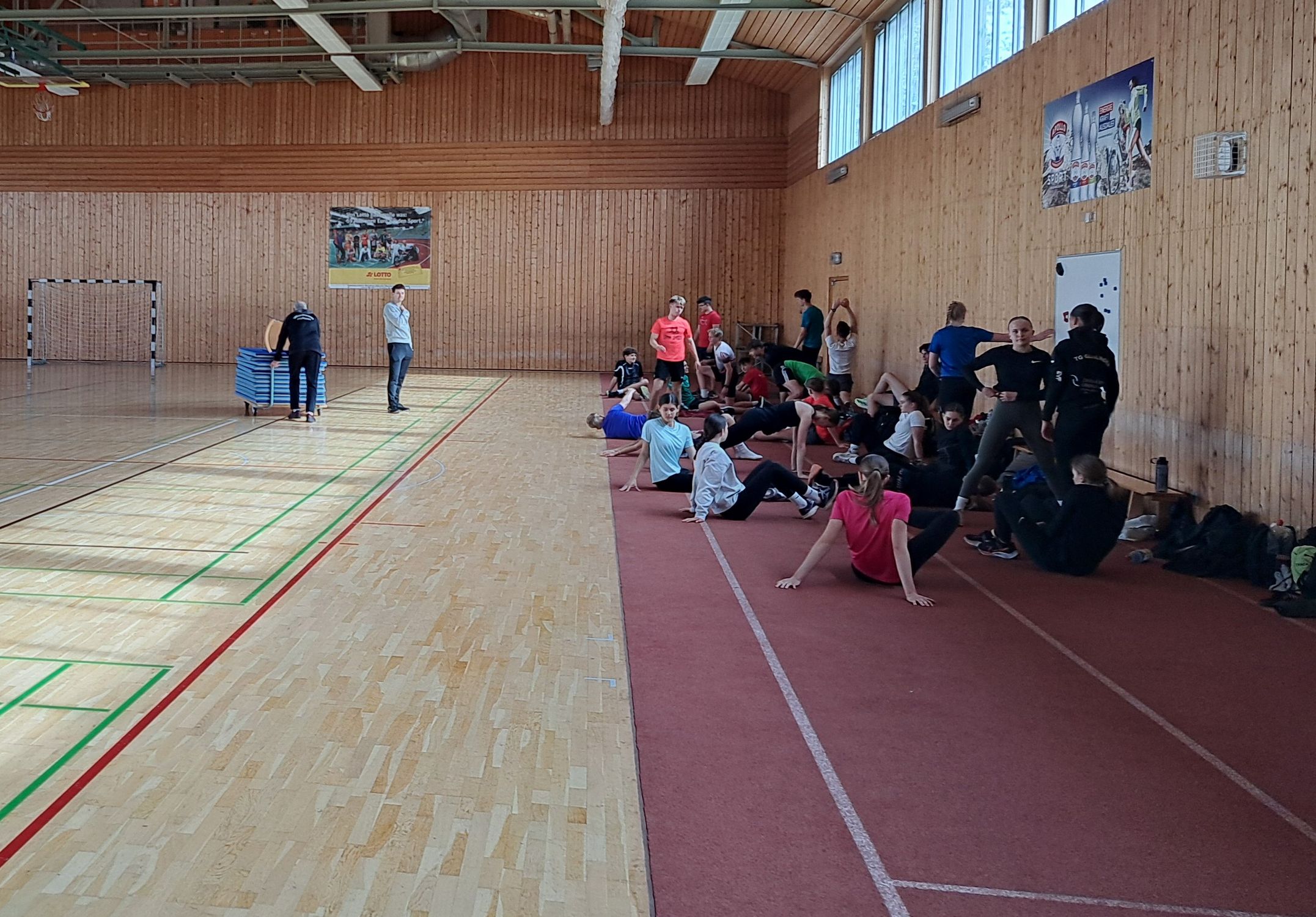 Während Mehrkämpfer, Stabhochspringer und Werfer in Albstadt aufgrund der kühlen und nassen Witterung dabei einige Zeit in der Halle verbrachten, bekamen Sprinter und Springer in Steinbach die Sonne schneller wieder zu sehen. Cathleen Tschirch, Sven Rees und Michael Beck konnten dort den Flach- und Hürdensprintern nochmals einige Tipps für das Techniktraining und die Wettkampfvorbereitung mitgeben, ebenso Steffen Hertel und Volker Zahn den Springern. Spiel, ausgiebige Mobilisation und eine Krafteinheit gehörten ebenso zum Programm.