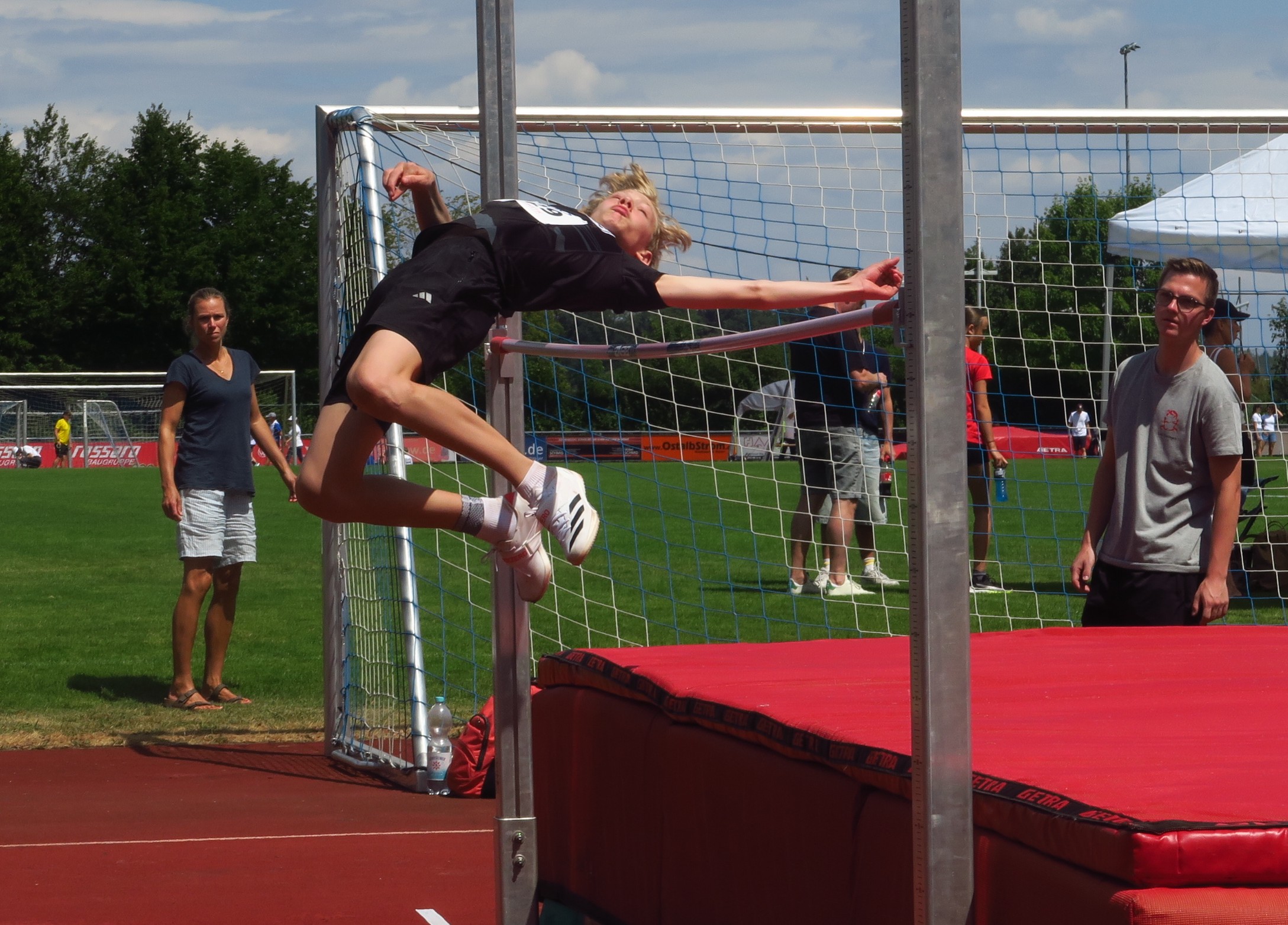 Der erste Teil des Wettkampftages stand im Zeichen der Wettbewerbe der männlichen Jugend U14. Dort fuhr im Blockwettkampf Wurf der M12 Marlon Metzger (LV Pliezhausen 2012) den ersten Favoritensieg ein. Mit 2.234 Punkten konnte er seine Konkurrenz um den Zweitplatzierten Jakob Schmid (Spvgg Holzgerlingen; 1.908 Punkte) und den Drittplatzierten Julian Helber (LG Filstal; 1.832 Punkte) deutlich auf Distanz halten. Im Blockwettkampf Lauf der M12 gelang dem Stuttgarter Lew Maximilian Gangl (Polizei SV Stuttgart) mit 2.180 Punkten ebenfalls ein beeindruckendes Resultat. Auf dem Weg zum Titel konnte er vor allem von der besten 800m-Zeit (2:29,54 Minuten) seiner Altersklasse profitieren. Das Podium komplettierten hier Julen Henschel (LG Filder; 1.984 Punkte) und Constantin Herbert (VfL Sindelfingen; 1.875 Punkte). Deutlich enger ging es dagegen im Blockwettkampf Sprint/Sprung der M12 zu. Hier entwickelte sich an der Spitze ein Zweikampf zwischen Claudel Thibaud (VfL Sindelfingen) und Alilou Djibril (DJK SG Wasseralfingen), bei dem sich der Sindelfinger nur mit einem starken Ballwurf auf 44 Meter vom Wasseralfinger abheben konnte, was ihm mit drei Punkten Vorsprung den Titel einbrachte. Noch weiter warf nur Paolo Spengler Castillo vom VfB Stuttgart 1893, der sich mit seinen 45,50 Meter auf den Bronzerang schieben konnte.